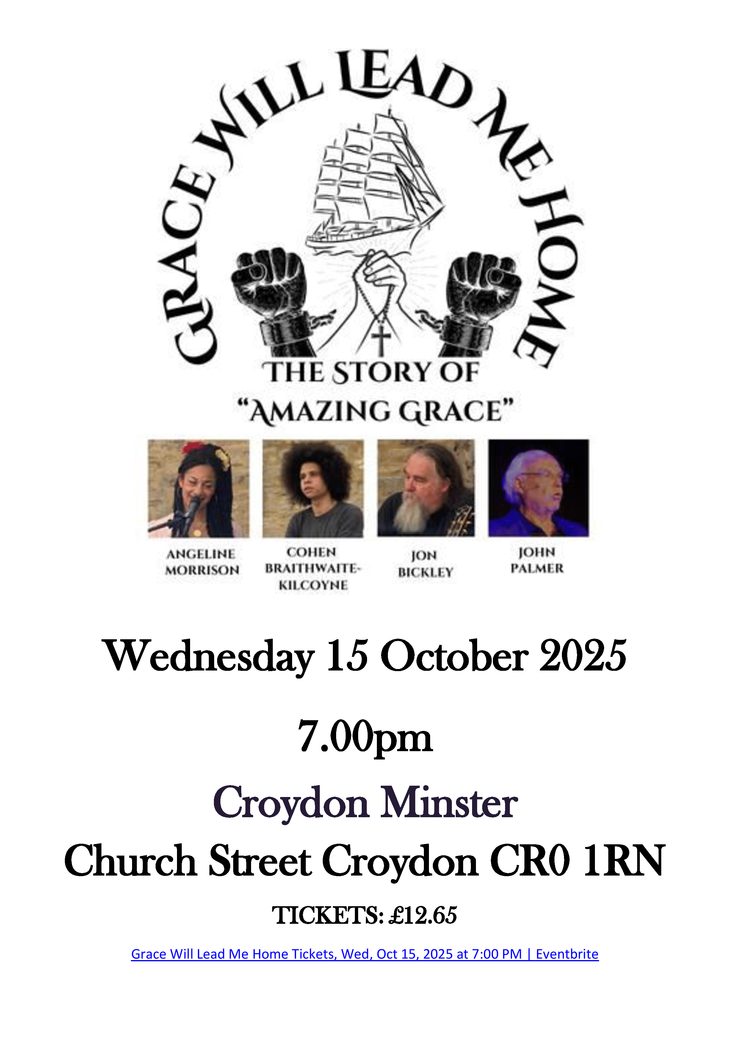 Archbishop Tenison’s Gospel Choir will take the stage with prominent black artistes Angeline Morrison; Cohen Braithwaite-Kilcoyne; alongside Jon Bickley and John Palmer, who will sing their songs of enslavement and salvation from the critically-acclaimed 2024 Top Ten Folk Album of the Year Grace Will Lead Me Home.